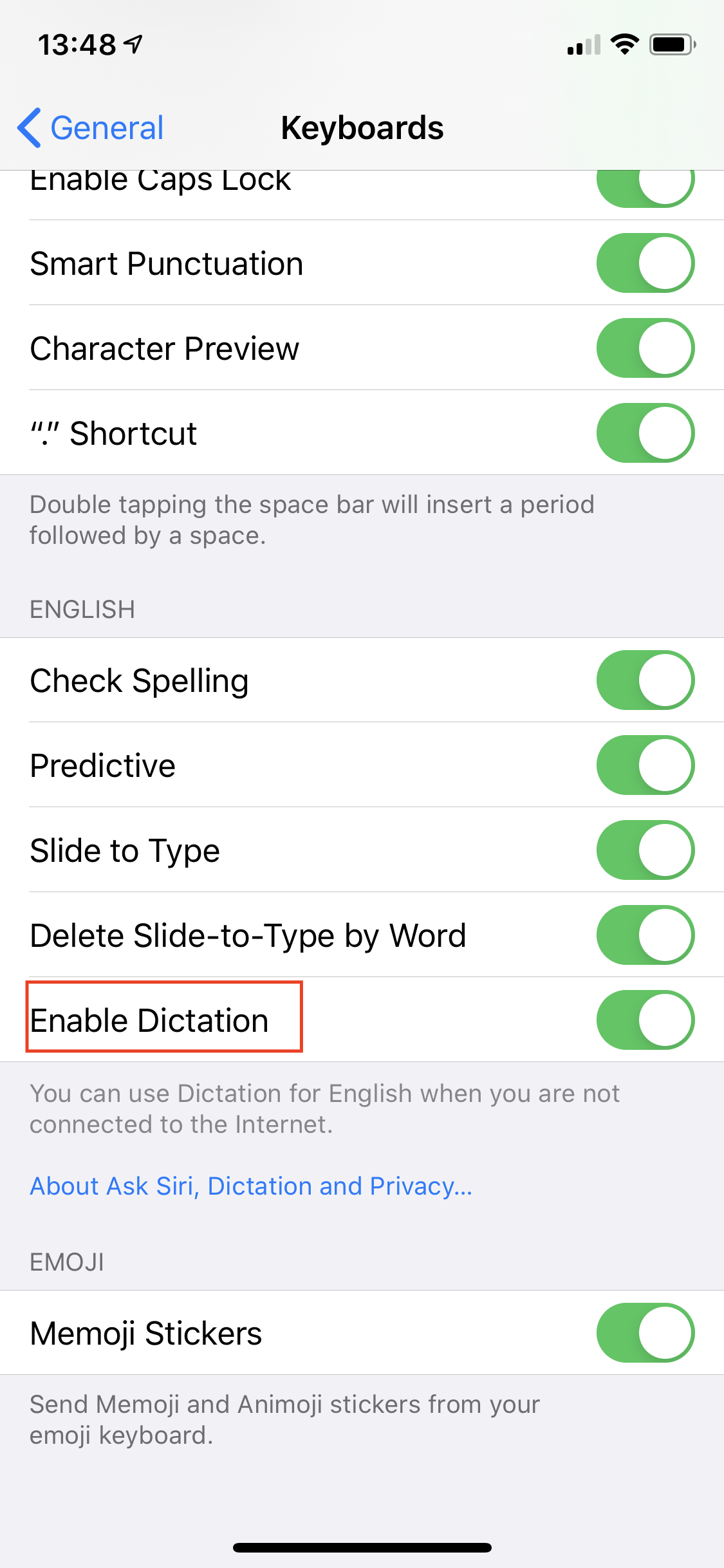 I don’t have the possibility to turn it on or off in the settings menu, it’s nothing with dictation there.