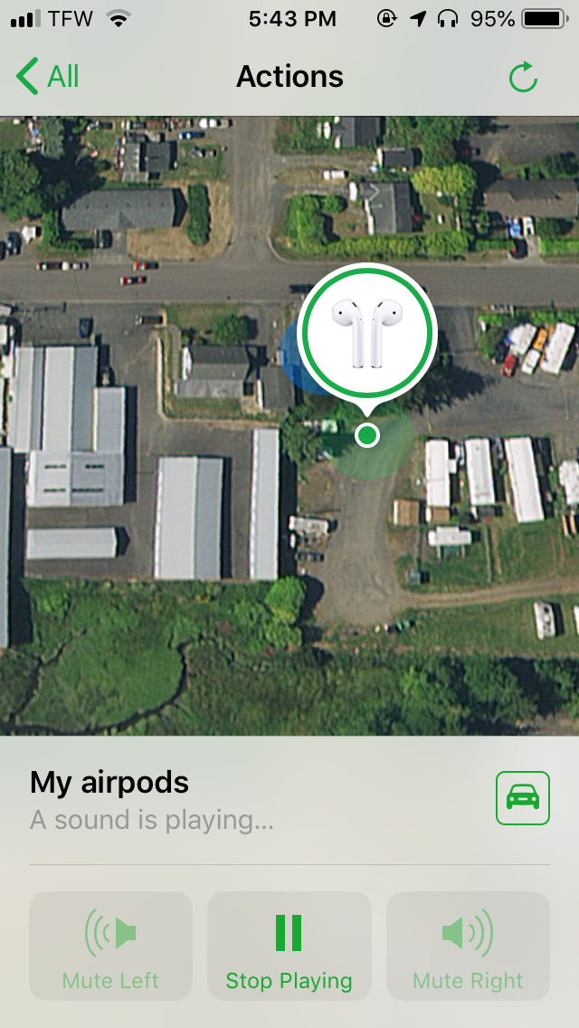 I've recently lost my LEFT AirPod and I can’t find it. I fell asleep watching Netflix last night with BOTH AirPods in my ears. When I woke up, I only found the right AirPod but not the left one. I’ve tried to use Find iPhone to help, but I will not let me Mute the right AirPod OR the left AirPod. Please help.