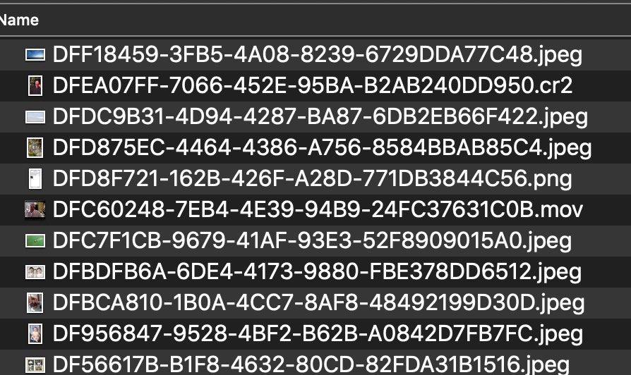 So if you want to have any useable file name for your original image files export them out of the library as follows: