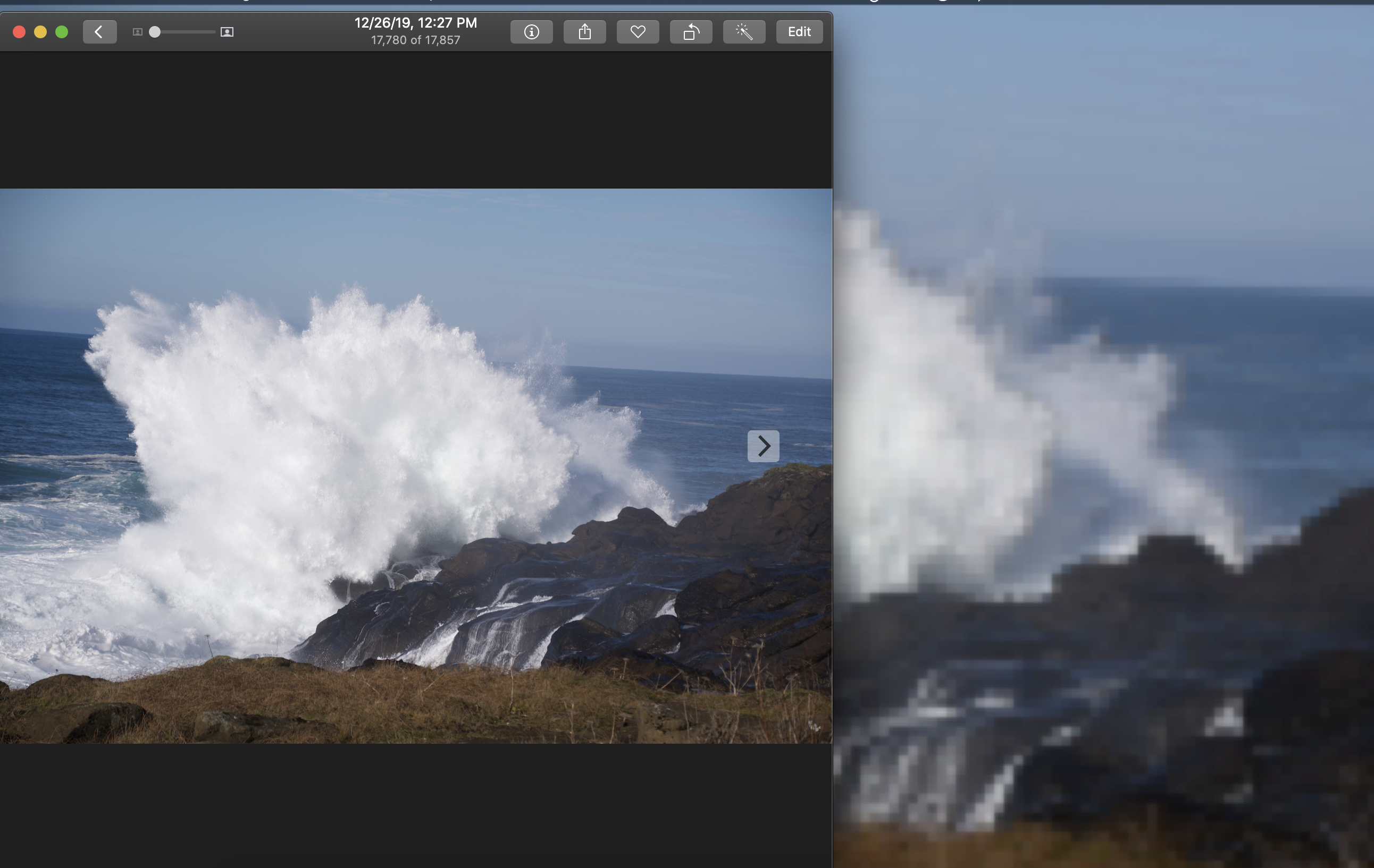 Recently when I used the Photos app to Share + set as desktop background, the result on the desktop was pixelated. The photo in the Photos app is not pixelated. I tried several other photos, chosen at random from my Photos library. Some of them were pixelated on the desktop and some were not.