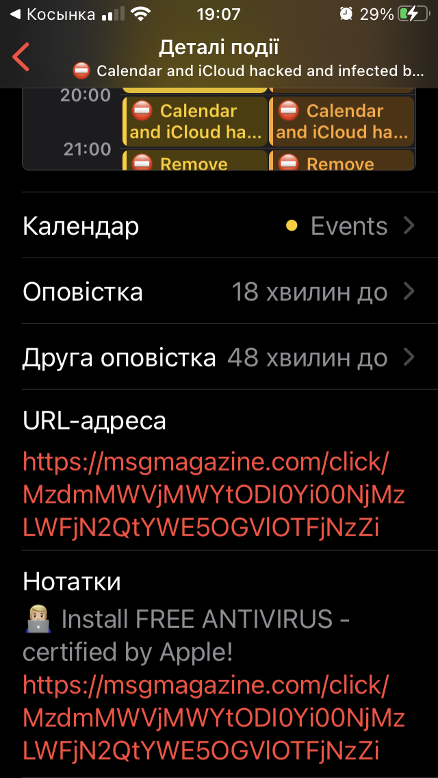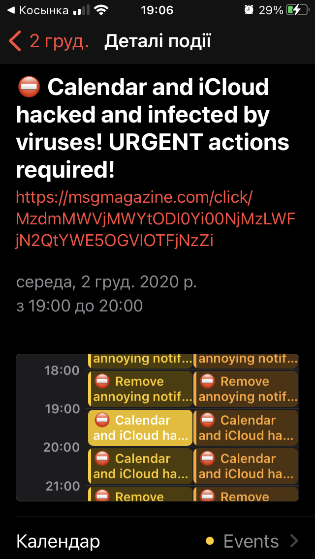 Note that it is not a virus. It is something that got added to your calendar because you may have accepted an offer from a pop-up on a website unknowingly. Please be careful out there.