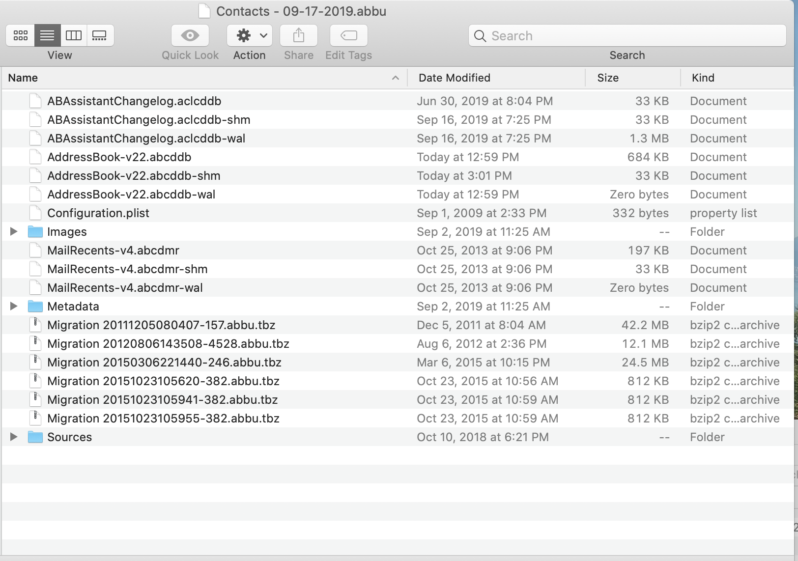 Also, when I search for the name of a person using Spotlight Search, it returns his or her Contact card from which I can copy and paste information. Is it possible Spotlight is pulling that info from the aforementioned .abbu file or a different source altogether? (Every name I search for in Spotlight returns two identical results too.)
