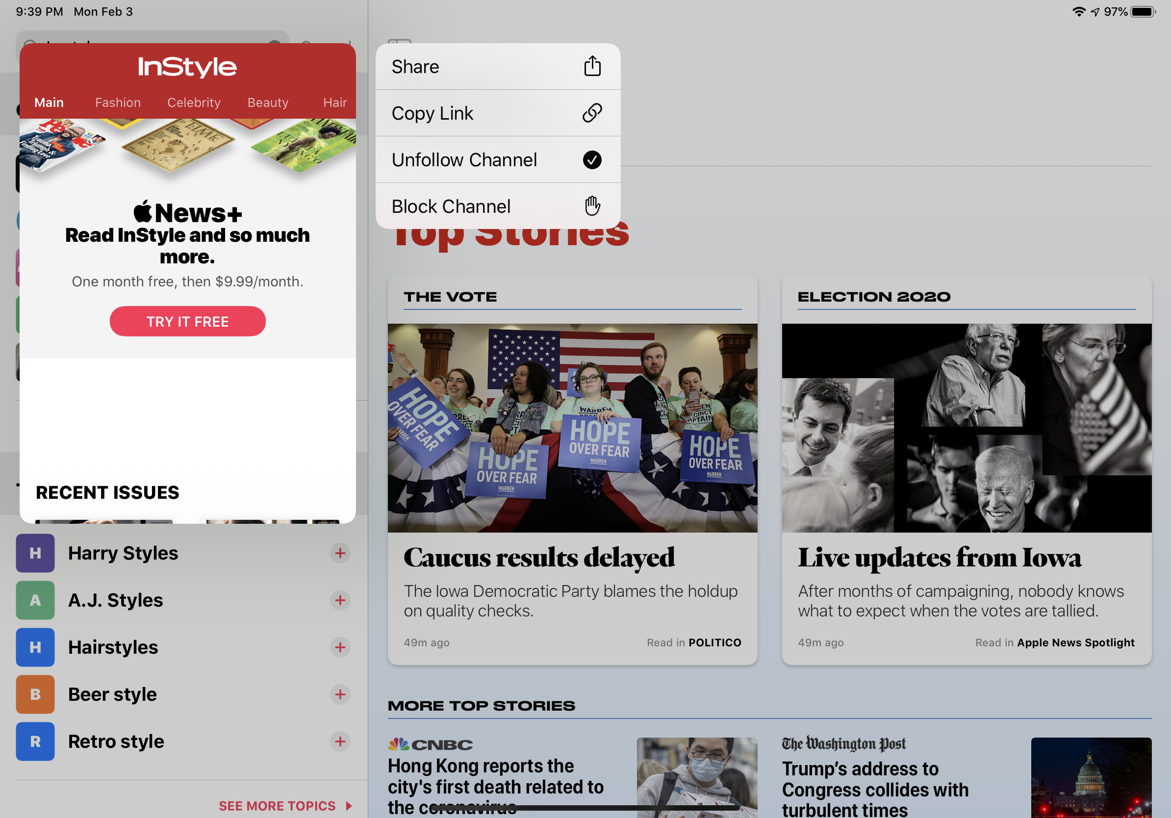 What I’m trying to explain is don’t select News+ (that requires a subscription). Select Today, and in the search bar key in the name of the magazine you’re looking for. On the magazines that aren’t showing subscribed, deep press on it (in the left side bar) and an option should appear about subscribing or already a subscriber.