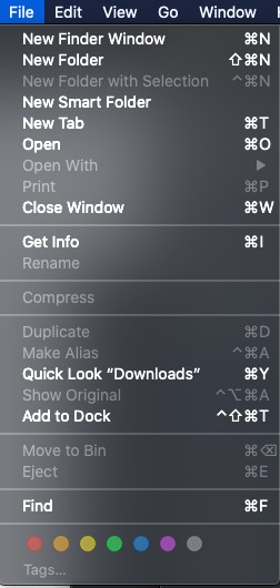 There is a bigger problem though, in that you can assign an unreserved Finder keyboard shortcut (e.g. ^T), and it may or may not work on the first try without having to perform a killall Finder in the Terminal. Then it may work once or twice, and then consistently ignore your keyboard shortcut — until you perform another killall Finder, and then rinse repeat with further shortcut failures. And no visible keyboard shortcut will appear on the Finder File menu for Tags… either.
