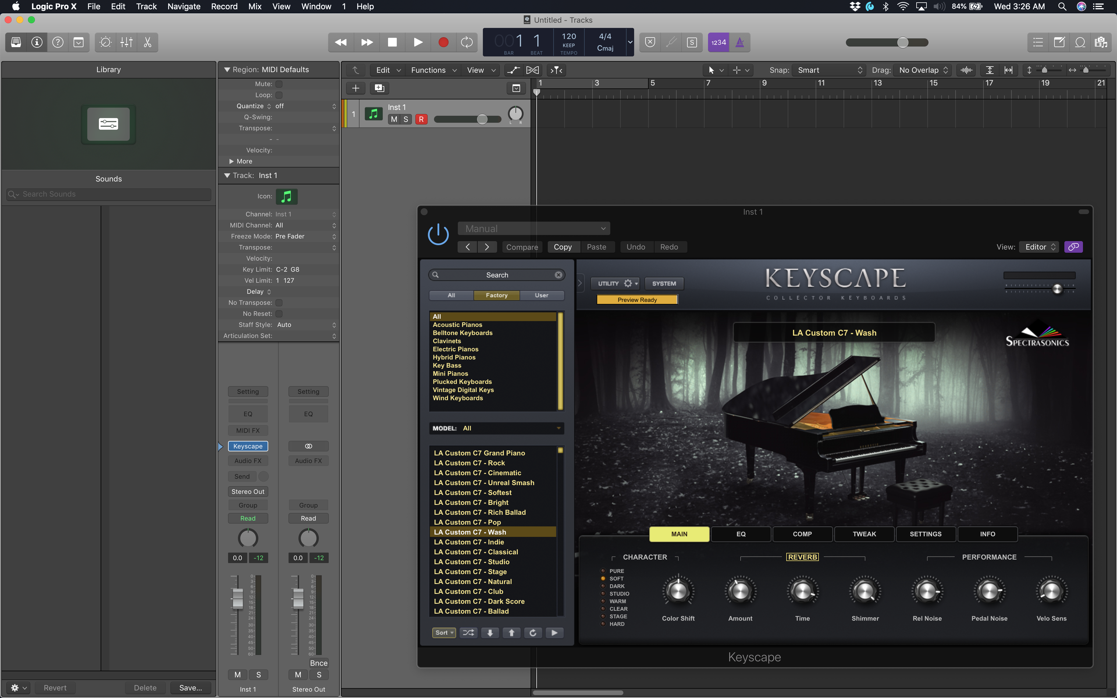 I went back and reloaded the instrument in Logic, and this time I waited for the entire "preview" to load. I normally don't have to do this in standalone mode, because it happens much faster. The results were the same, but I did discover something interesting...