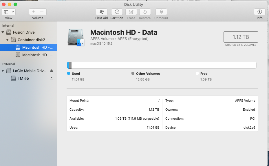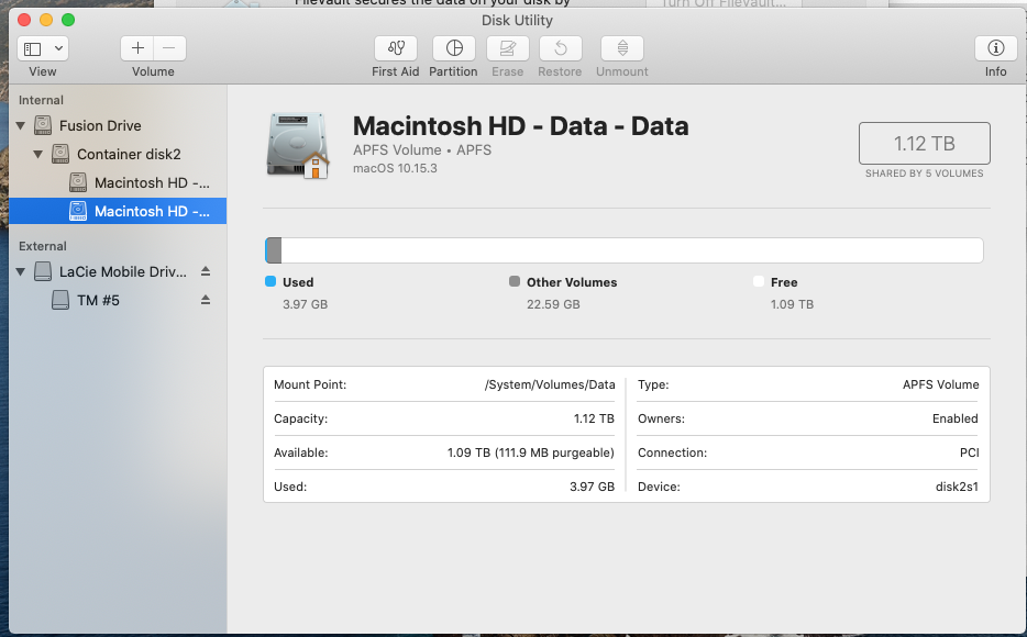 - I have again erased the data. (Disk Recovery Mode / Disk Utilities /erased Macintosh HD-Data / followed by Macintosh HD (unmounted or mounted} Apple Sr. Advisor said it didn't matter) - still have the same issue.