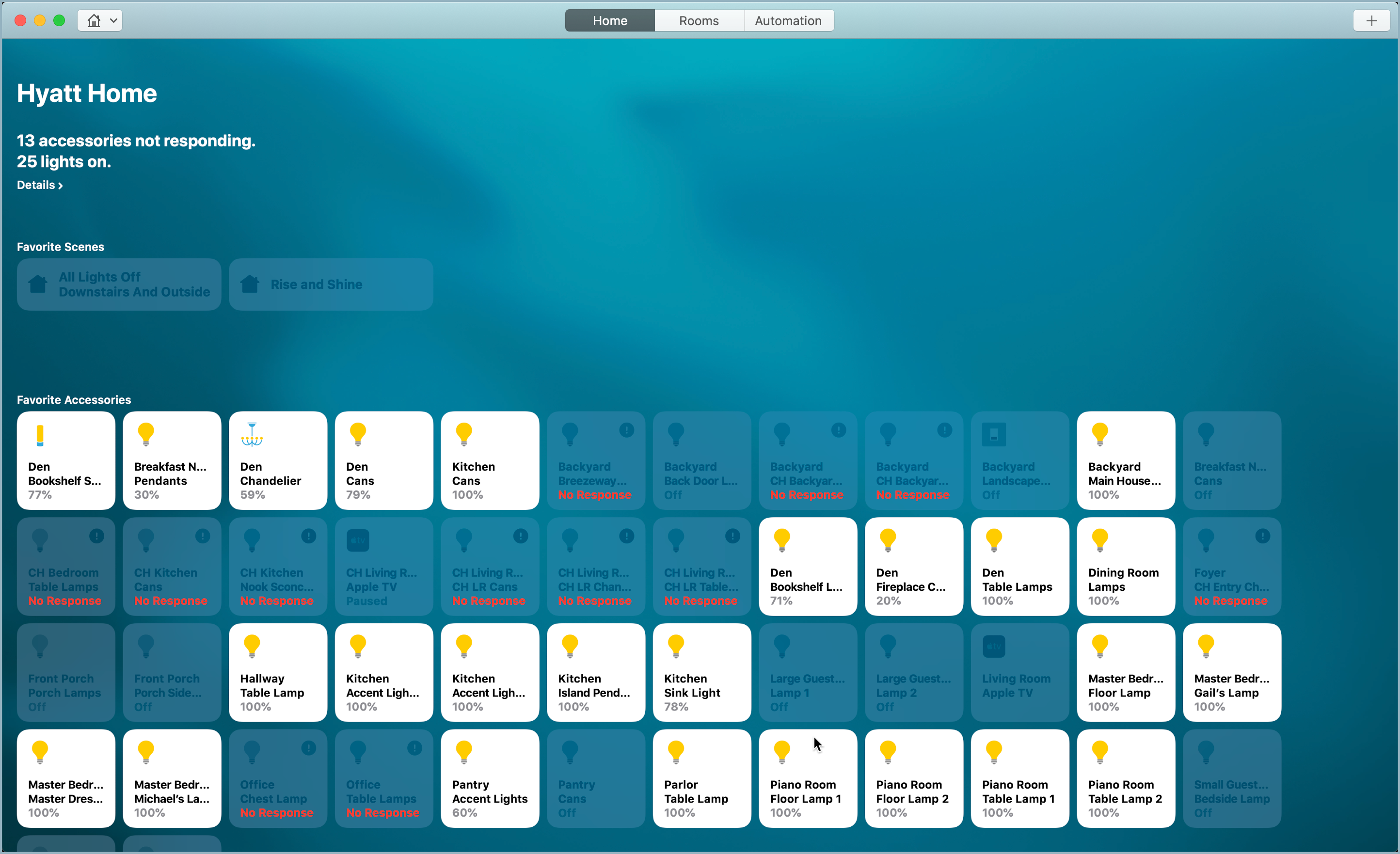 However, when I am in the Main House and log into that wireless network on my iPhone, I can see all the devices in both houses, but the devices in the cottage are inaccessible. They are labeled “No Response” (see below).