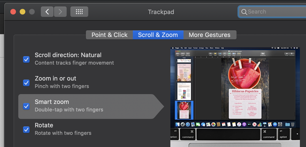 System Preferences > Trackpad > Scroll & Zoom > Smart Zoom.