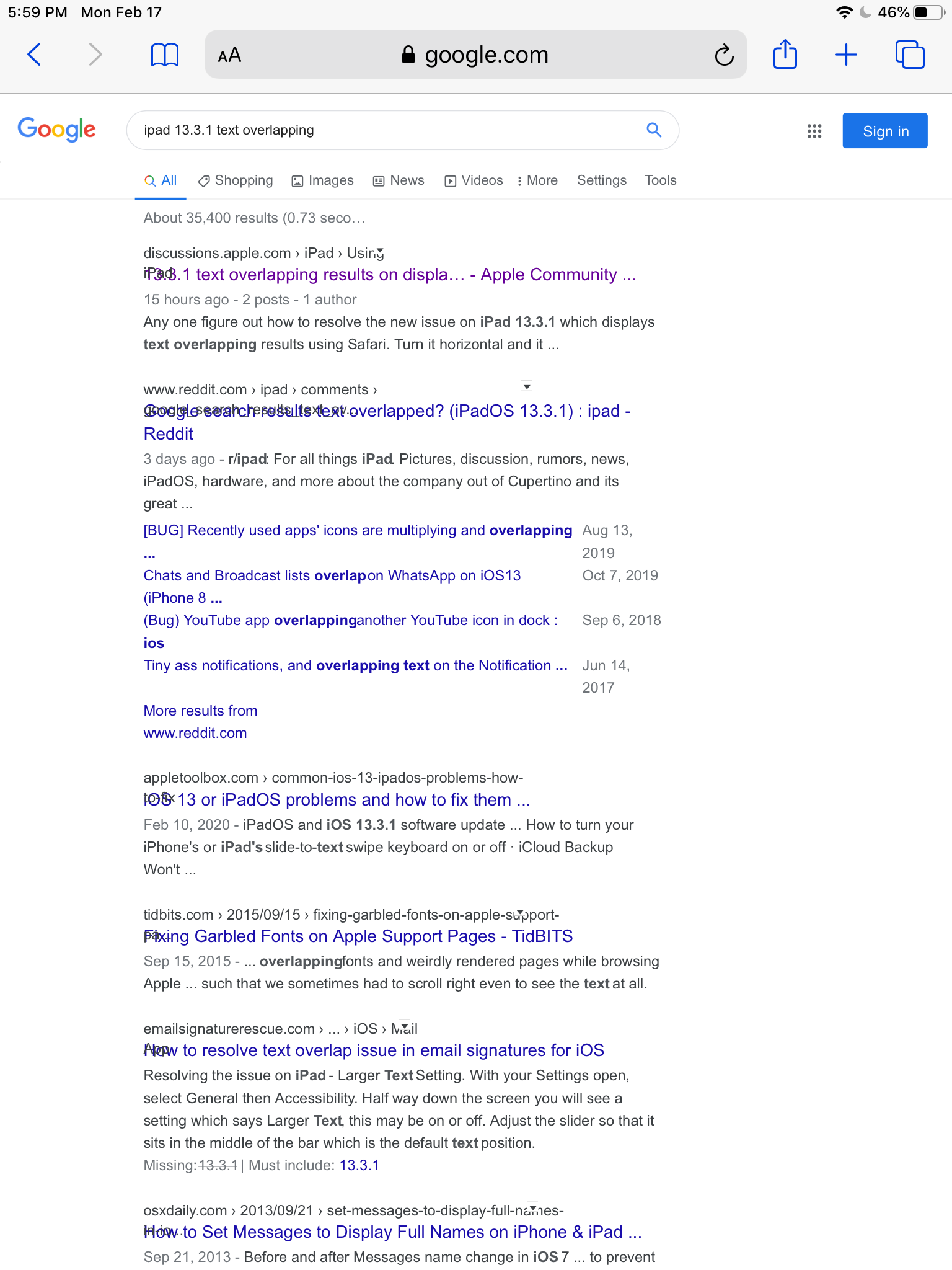 Any one figure out how to resolve the new issue on iPad 13.3.1 which displays text overlapping results using Safari. Turn it horizontal and it goes away.