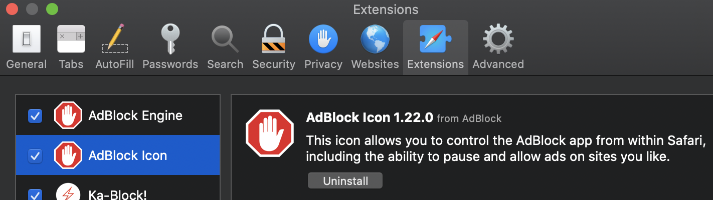 - Disable your extensions in Safari