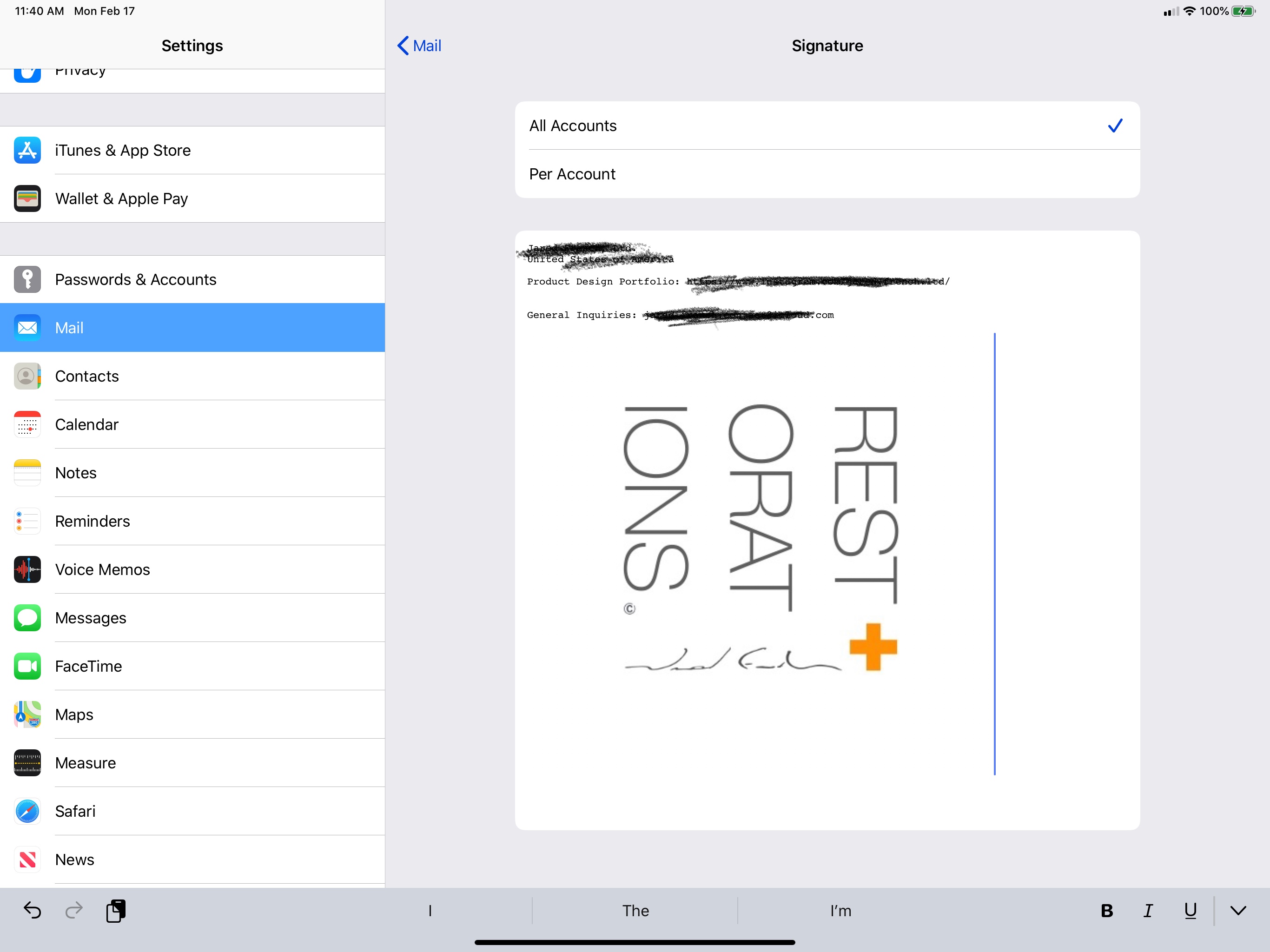 My signature looks great in the settings app on iPad but when I go to compose an email the logo is a no show. Tried multiple formats, images sizes, etc. What do I need to do to get a logo successfully loaded in my signature?