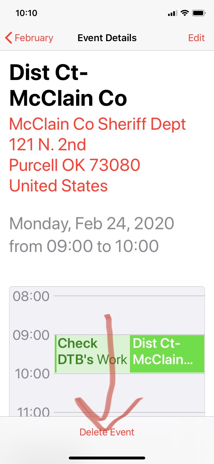 Got notified of an event I posted in Calendar. The event had been canceled so from the notification, I touched the event to pull it up. @ the bottom is a quick “Delete Event” button which is not functioning. In order to delete the event, I have to go into Edit mode. This does work, but the quick button does not.