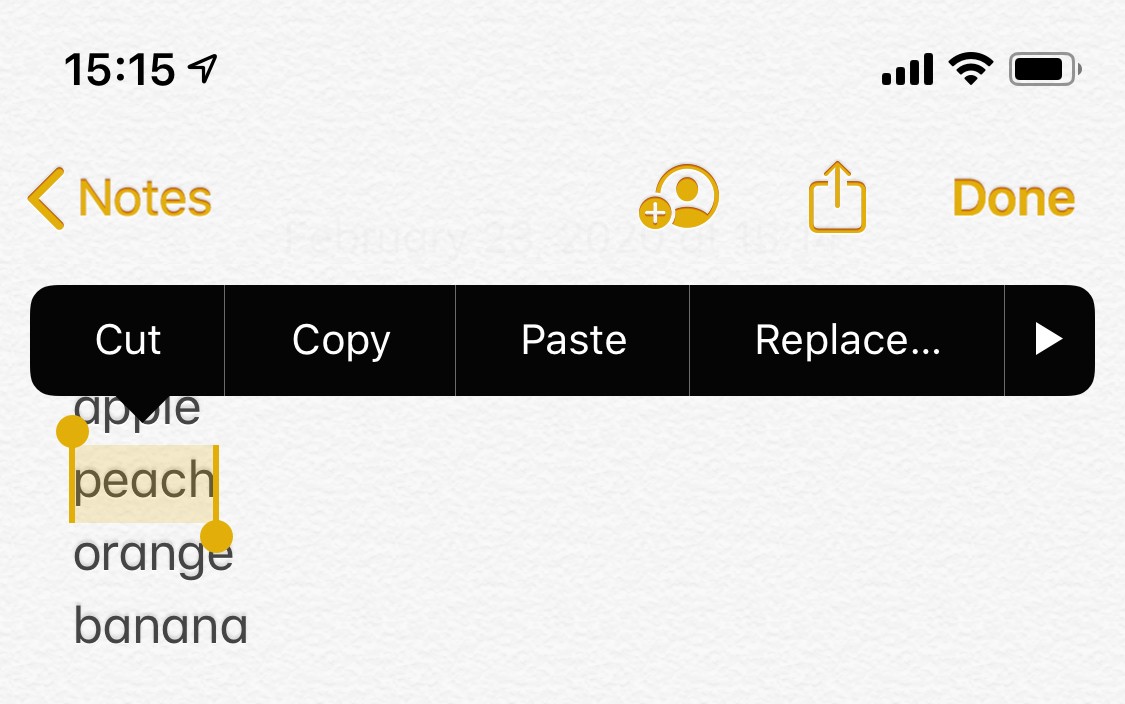 I updated my iPhone 8 to iOS13 and things are generally fine. However, the Notes app has gained some weird new behavior. I have a list of text items in a Note with each on its own line. When I want to move an item to a different location in the Note, I will select the line of text by double tapping it and cutting and pasting it somewhere else in the same Note.