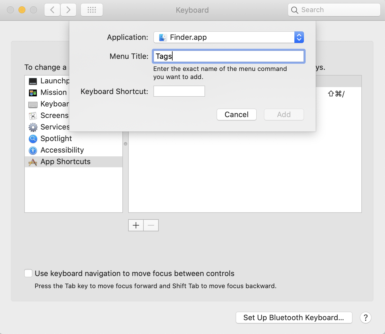 Can anybody explain to me how to create a keyboard shortcut for Tags?