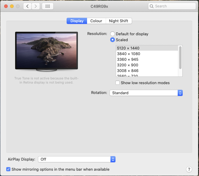 Native resolution issue with a Samsung C49RG94SSU 5120x1440 @ 60Hz
