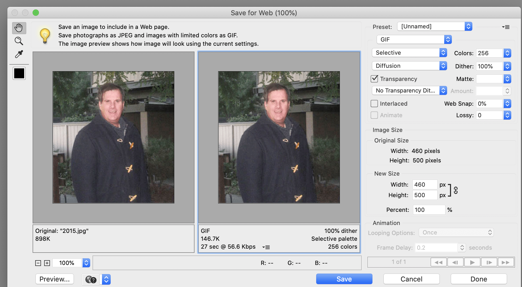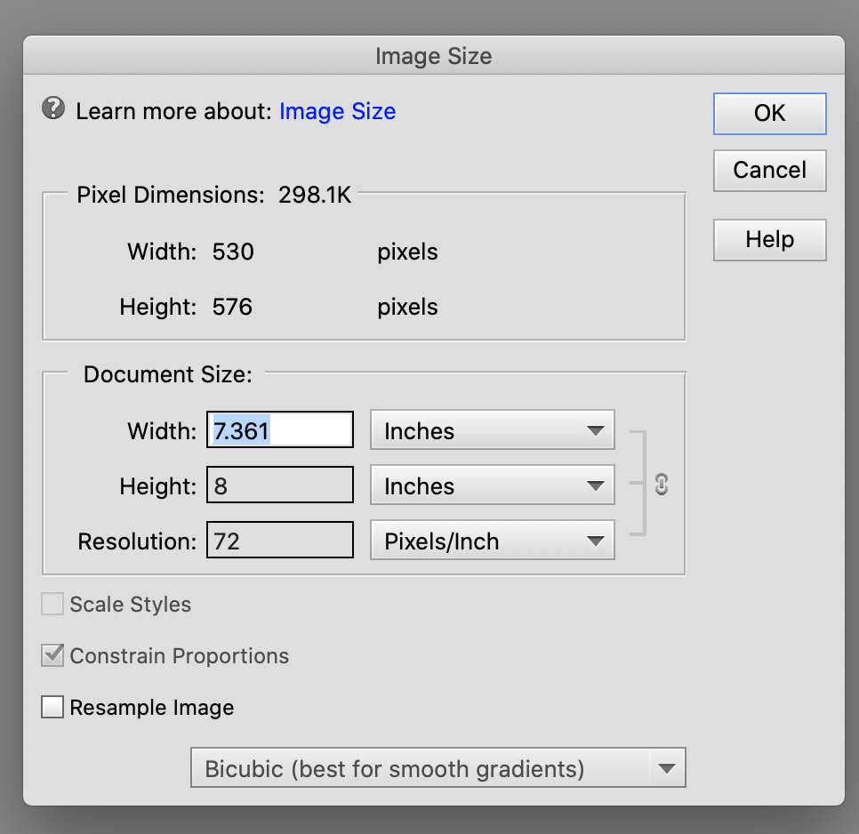 I've Adobe Photoshop Element 2020. I looked at the image resolation. I changed it to 79 resolation for the online from the image icon and then I clicked on the print for the web. I saw that has the 100% again. What does it mean?