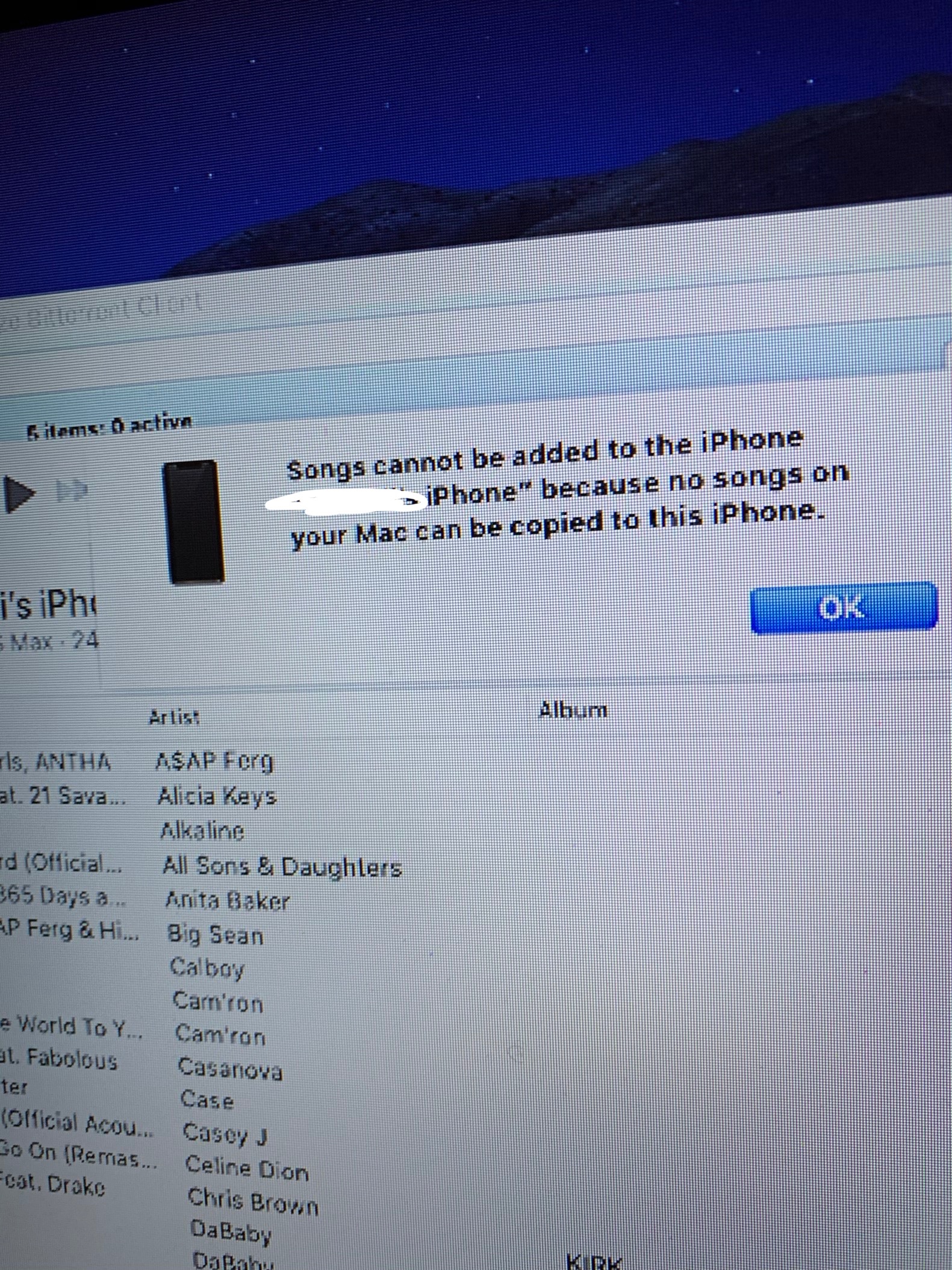 I understand that you’re seeing an error when trying to copy a song to your iPhone from your Mac, and I'm happy to help. You can try the suggestions here to see if this is being caused by a file permissions issue: