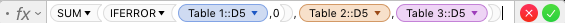 2. Also when I delete an entire table the "last" SUM table gives an error since it can't find the "deleted table". Is there any way to "ignore" the deleted table and sum the rest..