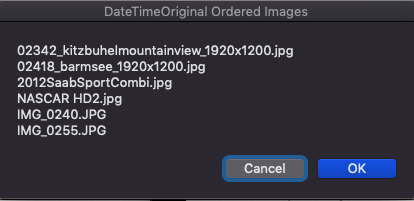 display dialog (items of tmp) as text with title "DateTimeOriginal Ordered Images"