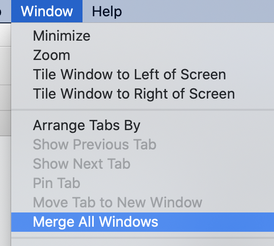 Merge an app’s windows into one tabbed window: In the app, choose Window > Merge All Windows.