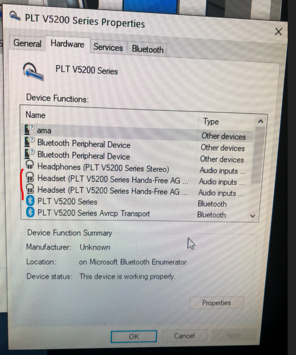 The headset works fine with my iPhone, in macOS, and on a different Windows computer. However, in Bootcamp Windows is only recognizing the headset as a playback, and not a recording device. On the working computer, it says "Connected voice, music" and on in Bootcamp it just says "Connected music". When I look in at the Bluetooth drivers, Windows is only installing the Headphone profile.