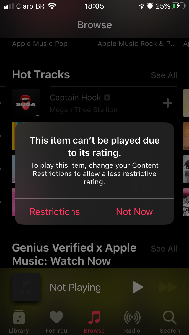 I'm just starting to use Apple music, today when I went to the global Top 100 Songs Global list, I received a PopUp telling me that I should ease the restrictions on the content,