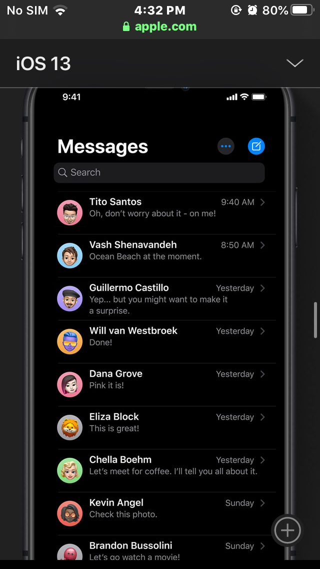 While looking at the iOS 13 overview page, which, by the way, is awesome, I saw a picture of the main Messages screen, with contact photos/Memoji next to each message. On my screen, it’s not showing those. Does this just depend on your model of iPhone? I have the latest iOS.