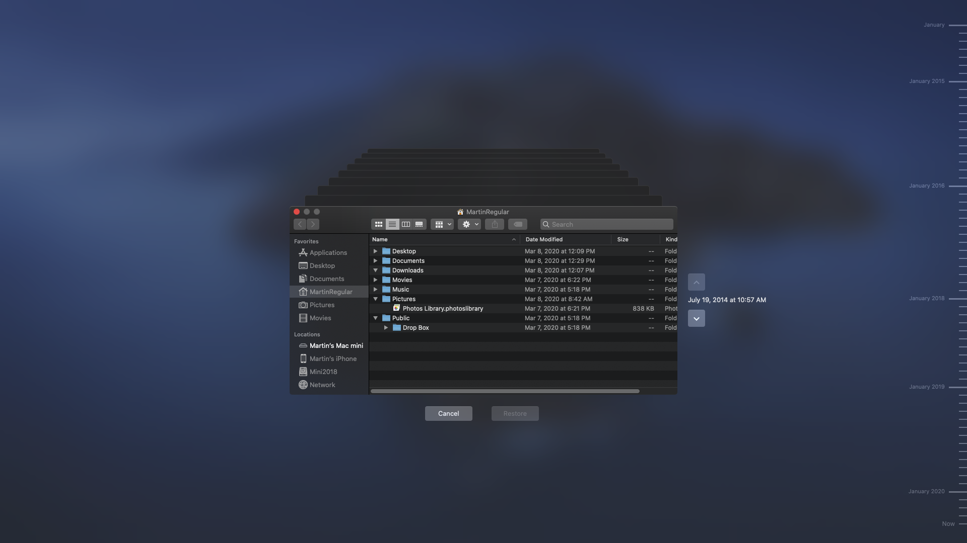 Some other quirks in Jan-Feb, with persistent spyware intrusions of a program whose icon was a magnifying glass on a blue-green background. Easy enough to find and delete. A friend who used to write Mac articles for a major daily newspaper advised wiping the MacMini and clean install of a new OS. Internet install pushed me to Catalina.