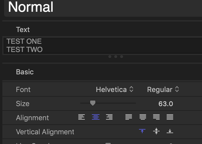 <text-style font="Helvetica" fontSize="63" fontFace="Regular" fontColor="1 1 1 1" alignment="center"/>