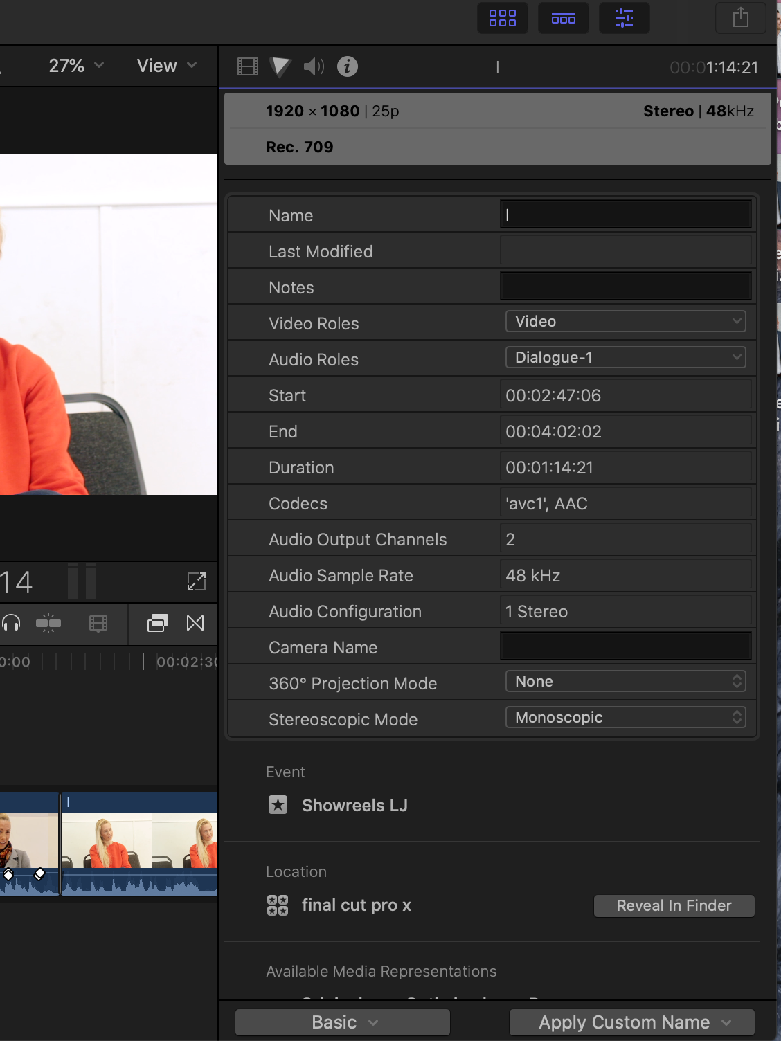 inspector covering timeline - fcpx