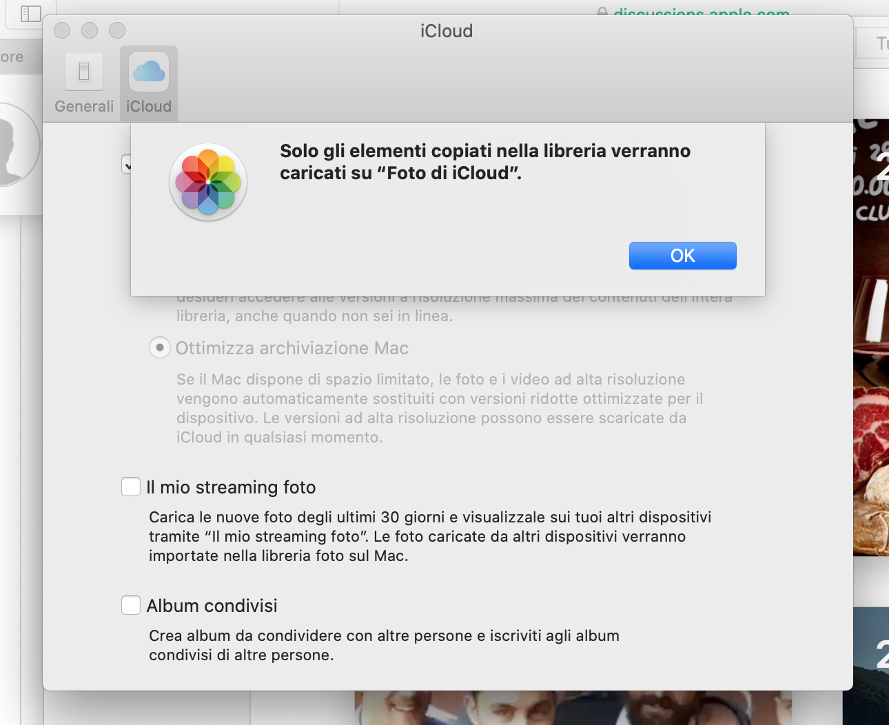 3) clicking on iCloud photo, it gives me this message: Only items copied to the library will be uploaded to "iCloud Photos".