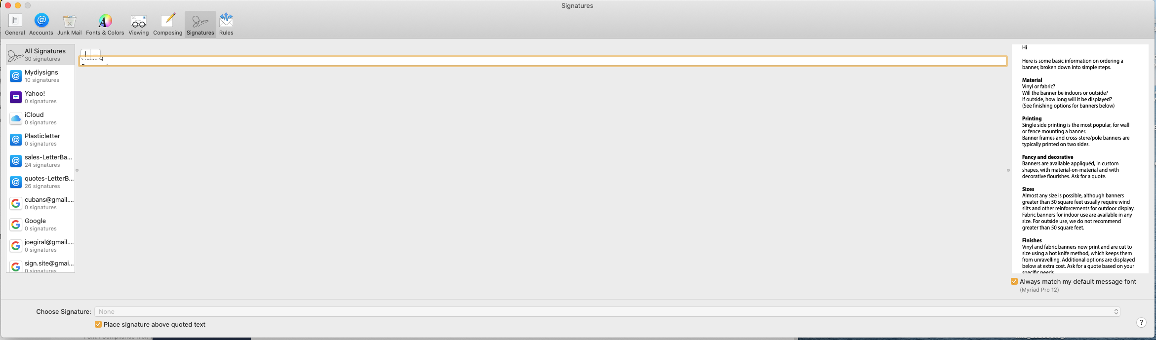 I "clicked and dragged" the preference pane earlier to make the signatures easier to work on and have not been able to reset (or use) the signature or preferences pane to the original small size.