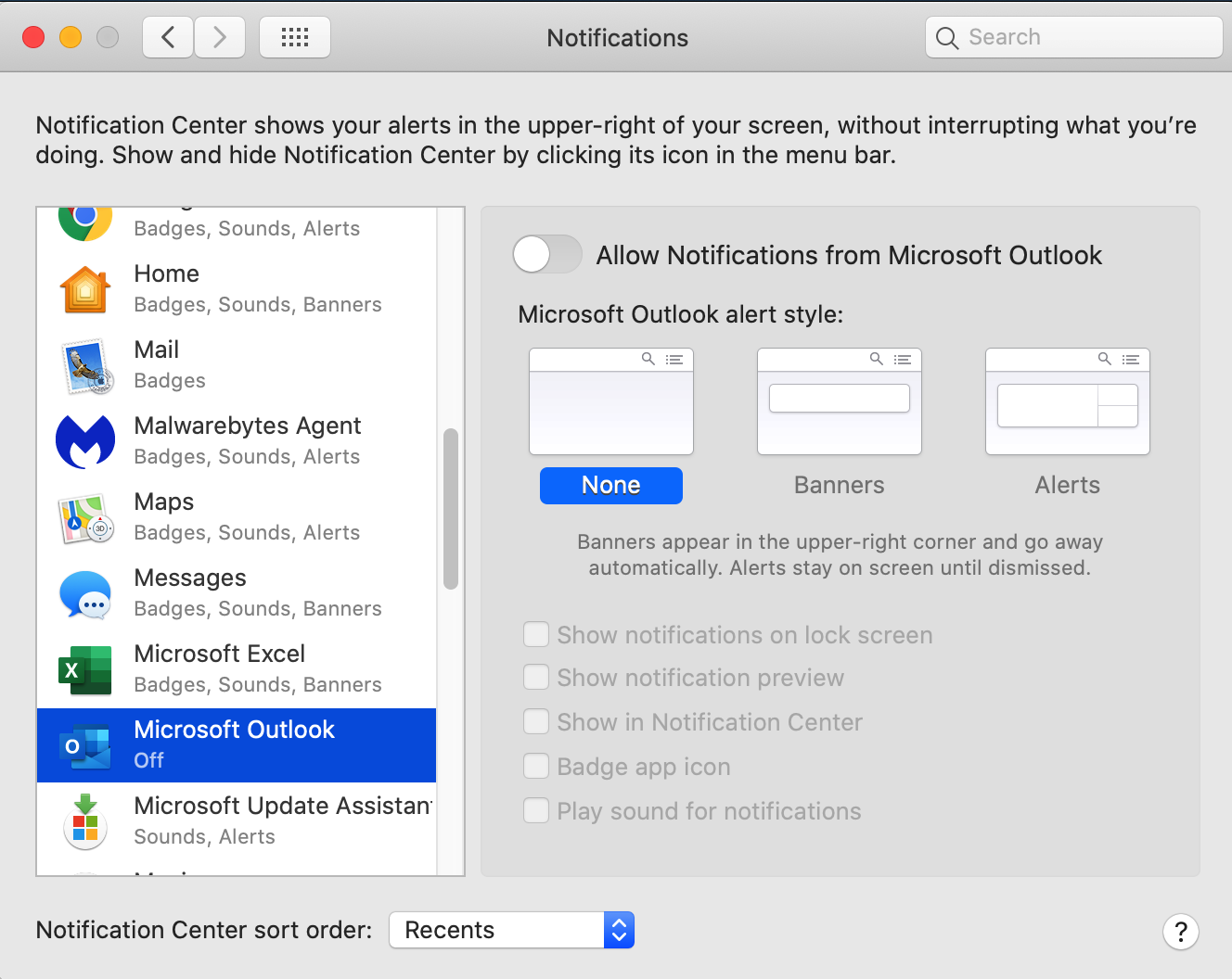 I have an Office 365 Exchange account that's only permitted on the corporate network. Mail is closed and even if I open it the account shows as disconnected/offline. Despite all of this, the OS seems to continuously try to sync with Exchange (unsuccessfully), and pops up an "Exchange Password Required" notification. I can close the notification, but it comes up a few seconds later, forever, unless I completely disable notifications (do-not-disturb).