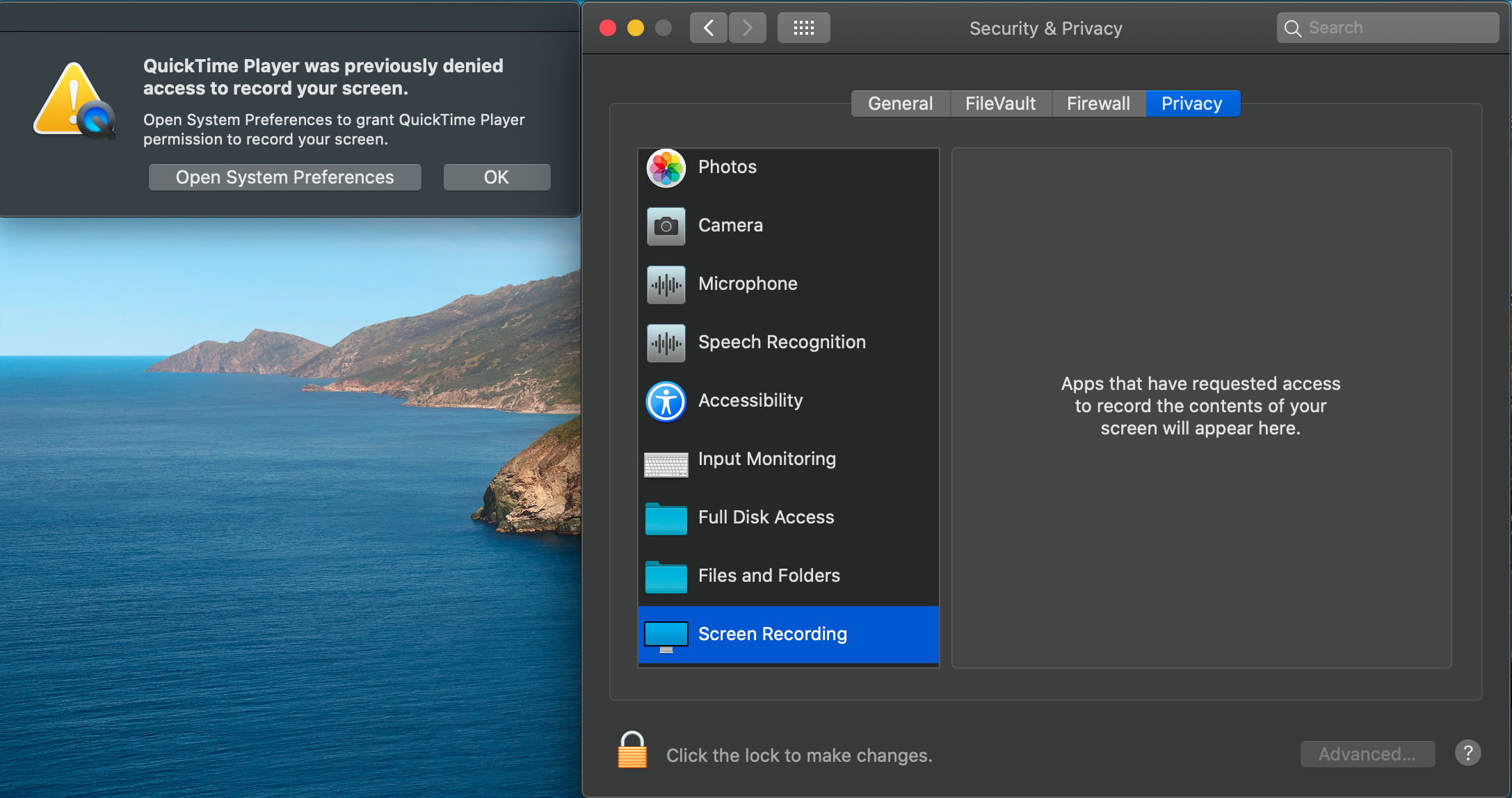 Wechat and other apps which has screenshot functionality not working after upgrade the system from macOS High Sierra to macOS Catalina.