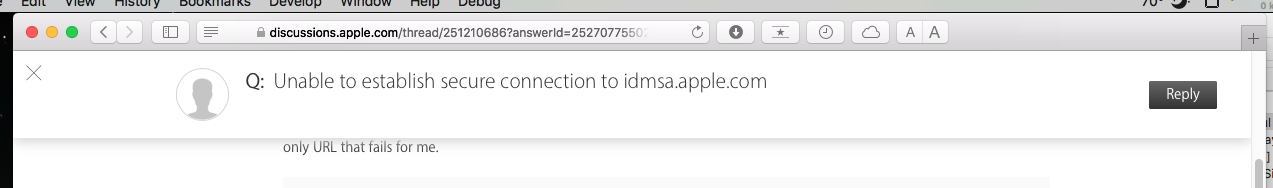 Unable to establish secure connection to idmsa.apple.com