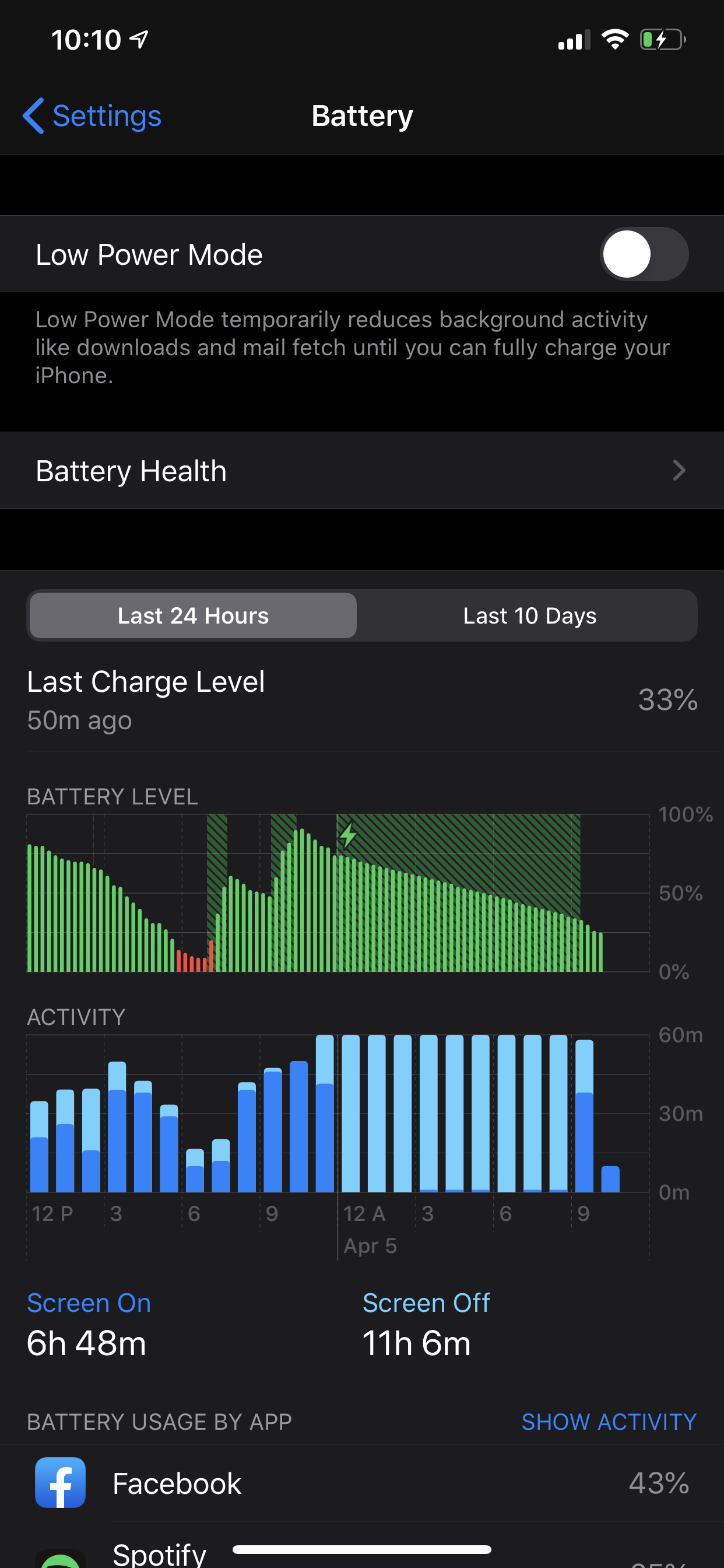 Hi after the update to iOS 13.4 the battery is drain like crazy the iPhone last for h max !!