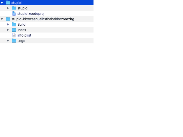 Just learning xcode, when I create a new project "stupid", it also creates these either other bazaar names, see below such the one that continues with stupid-bbwzasnaual.... what is this, why do I have it, how to get rid of it?
