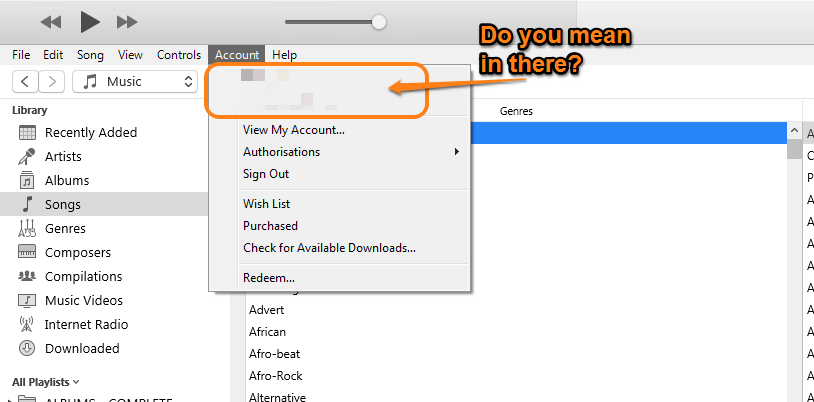 Underneath the area I've blanked out in the screenshot, my details are greyed out, but I am signed into my account.