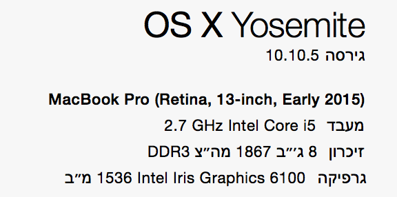 MacBook Pro 13", OS X 10.10