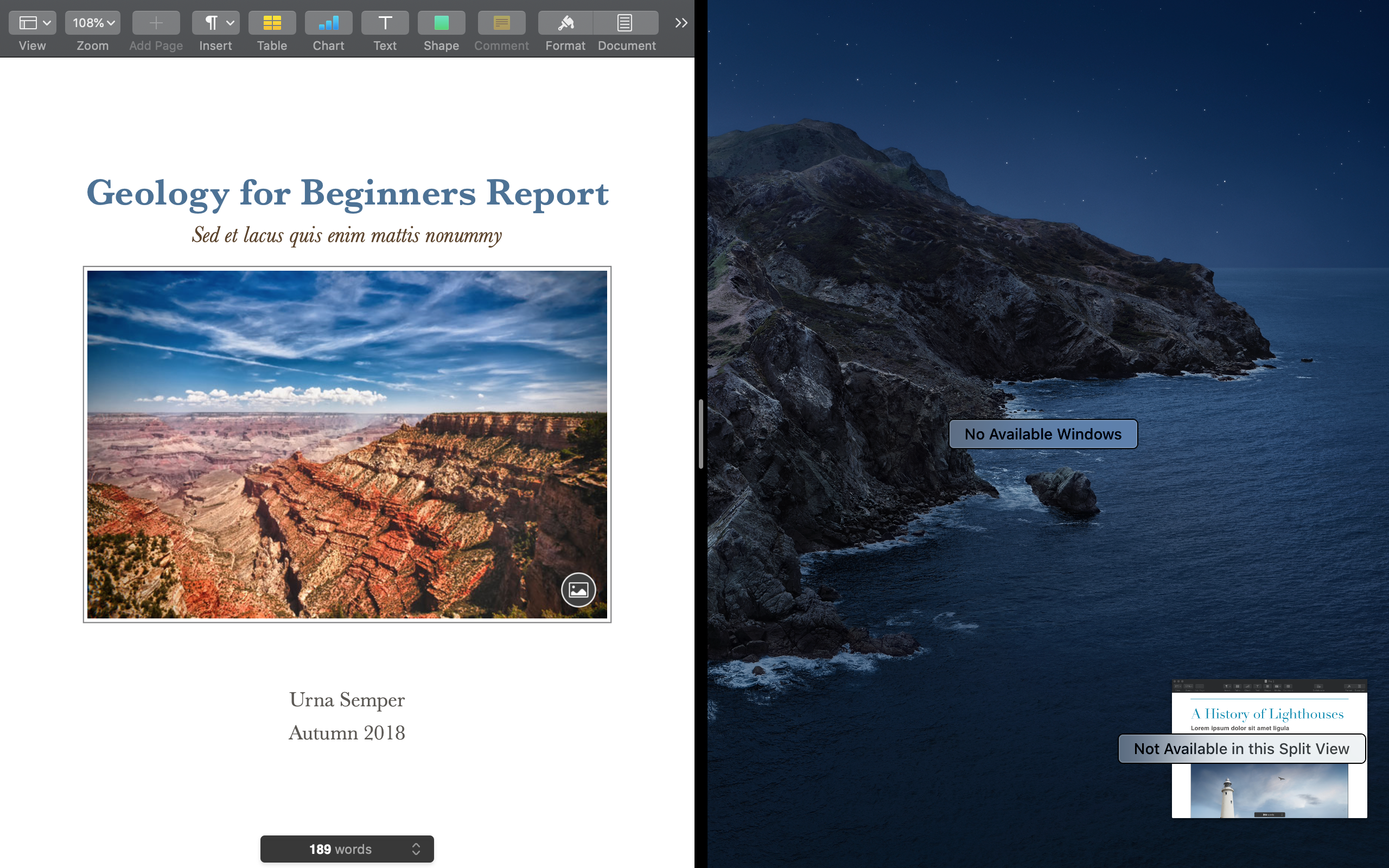 For some time now, my MacBook refuses to split view two .pages documents. For my work it is necessary to compare two documents, so it is much easier to split the screen. Not being able to do this is very annoying, seen as it was previously possible in MacOS Mojave. Is this just a bug or is this easily fixable? I have turned on "displays have separate spaces" in Mission Control, but this does not seem to be the problem.