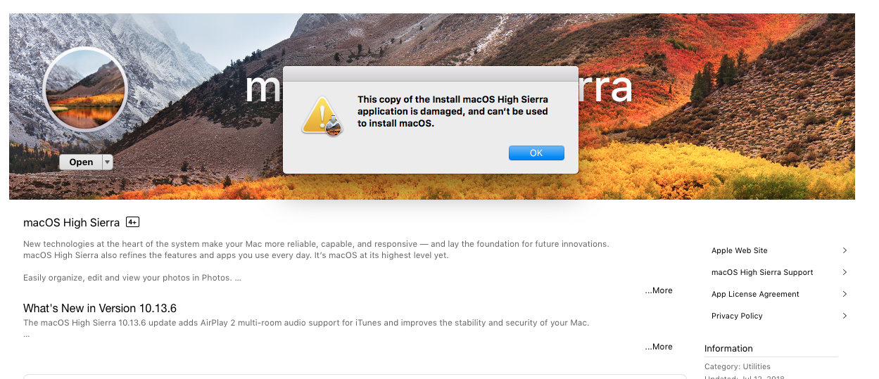 I am wondering how to update my macbook pro to high sierra operating system? Each time I try to do this, this error pops up. I have a 2011 macbook running version 10.12.6 and I just want to get it to 10.13. How can I do this?