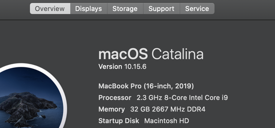 Yesterday I update the Mac OS to : 10.15.6 (19G2021)