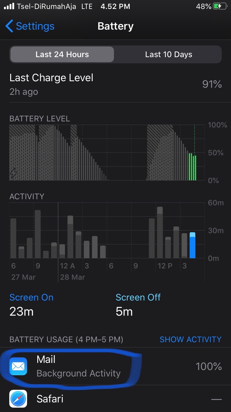 - If the Mail app lists Background Activity, you can choose to fetch data manually or increase the fetch interval. Go to Settings > Accounts & Passwords > Fetch New Data."