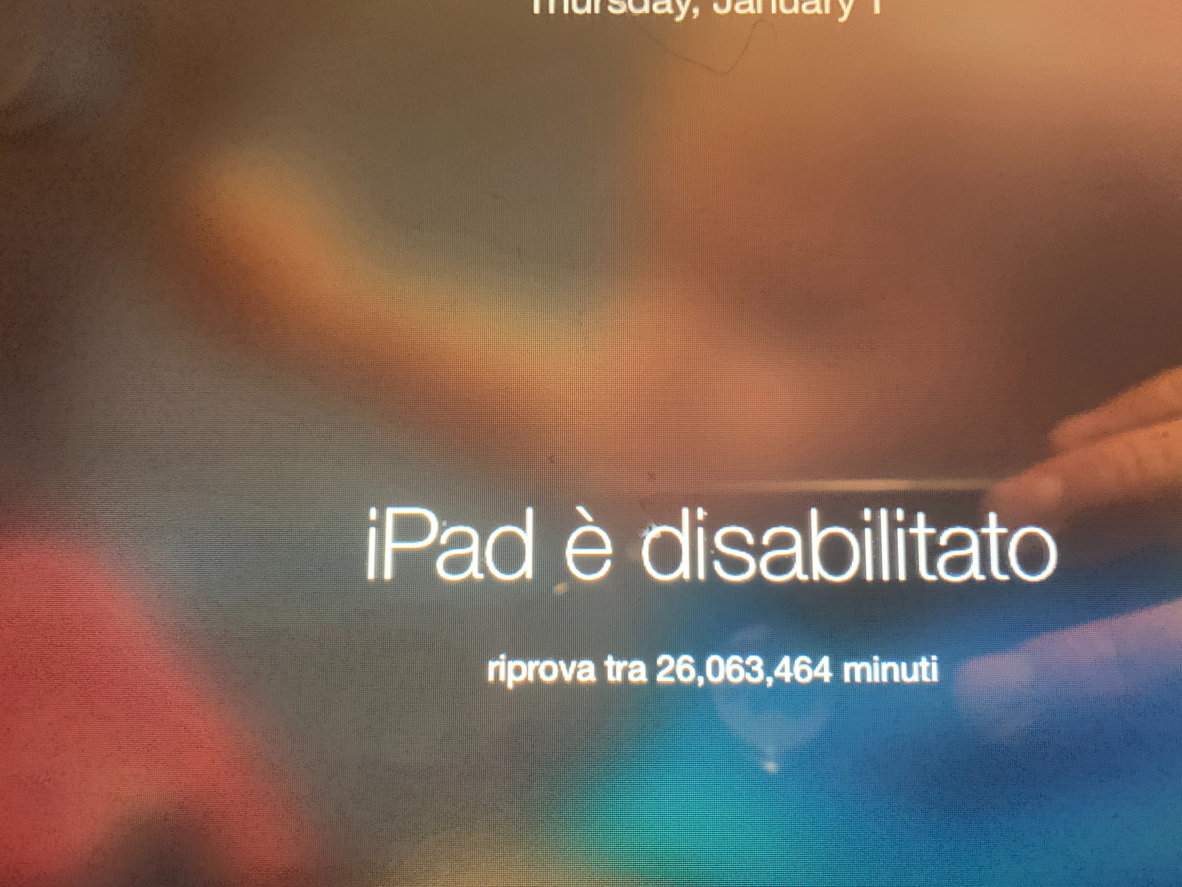 After a long time, I tried to use my old iPad again for my kids' e-learning. I plugged in, charged and then I saw on the screen: "iPad disabled. Try again 26xxx minutes" (see attached picture)