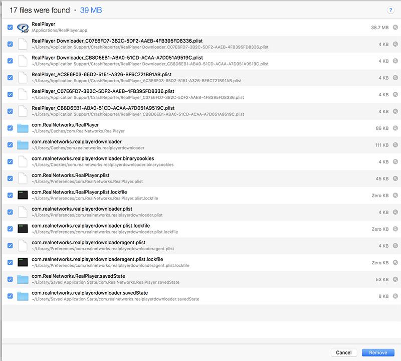 7 Many files will show up in the Appcleaner window remove it
