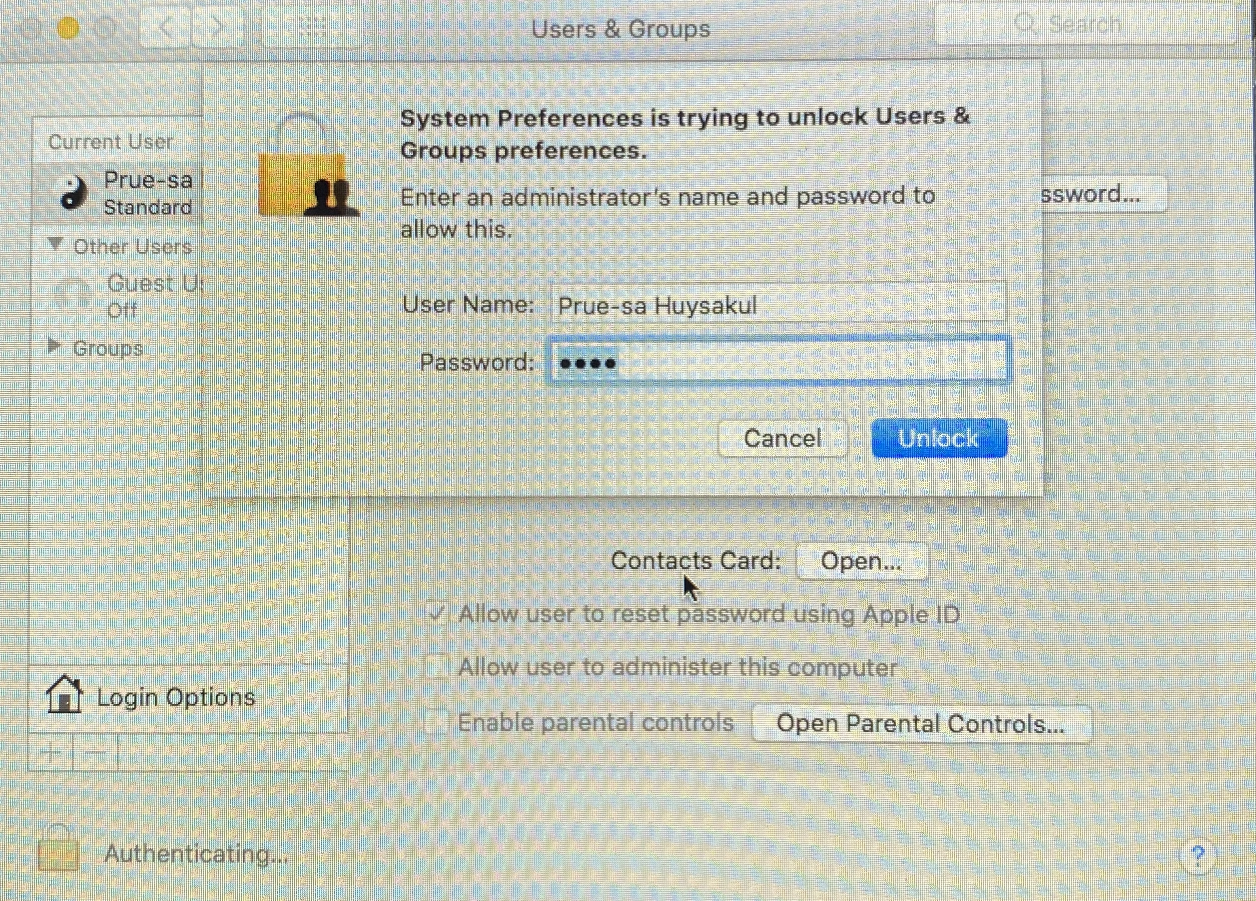 I cannot unlock because at first I try to change the name of Admin and I did not clearly read all what Mac said. Then when I try to unlock it requires me to fill in User Name and Password and the system change me to Standard instead of Admin. Therefore, even I try the to fill User Name and Password, they are all incorrect. Anyone knows how to solve this problem please help me. I would like to know how I can know my Admin User Name and Password. Thank you very much.
