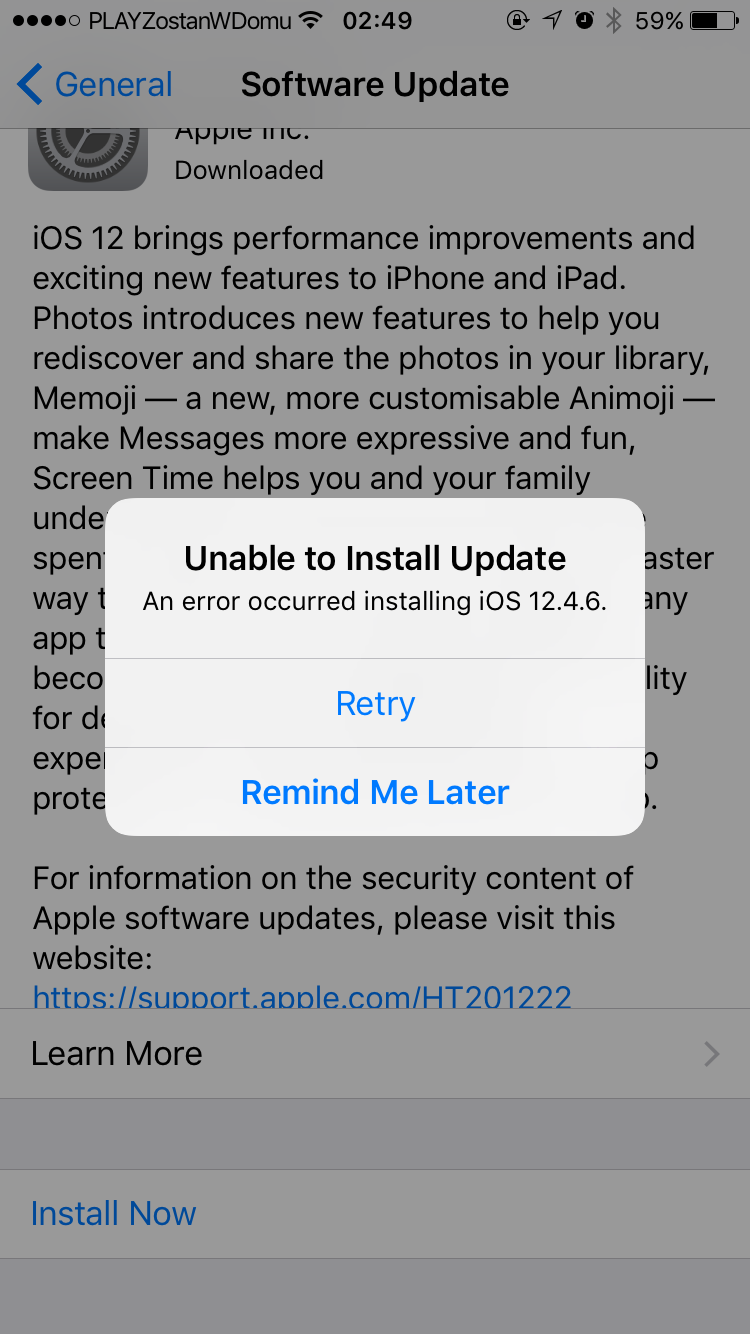 Not Able to Install iOS 12.4.6 in IPhone 6