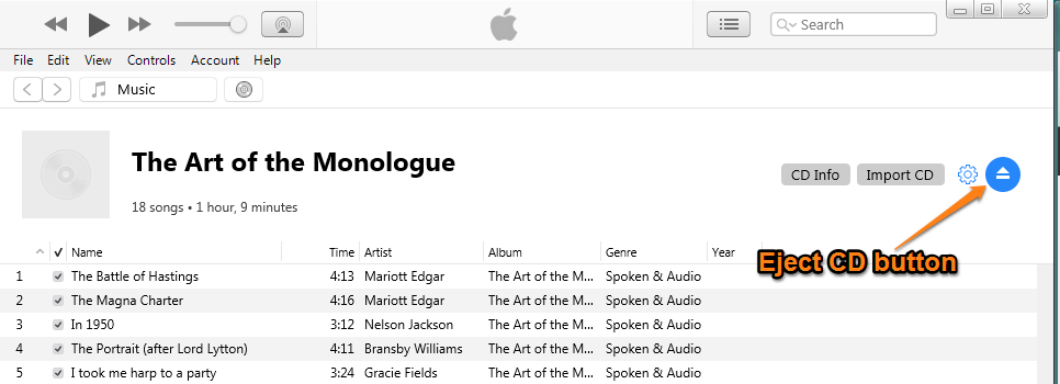 There is also a setting that will cause the CD to automatically eject after it has been imported. It's in Edit / Preferences / General / When you insert a CD: Import CD and Eject: