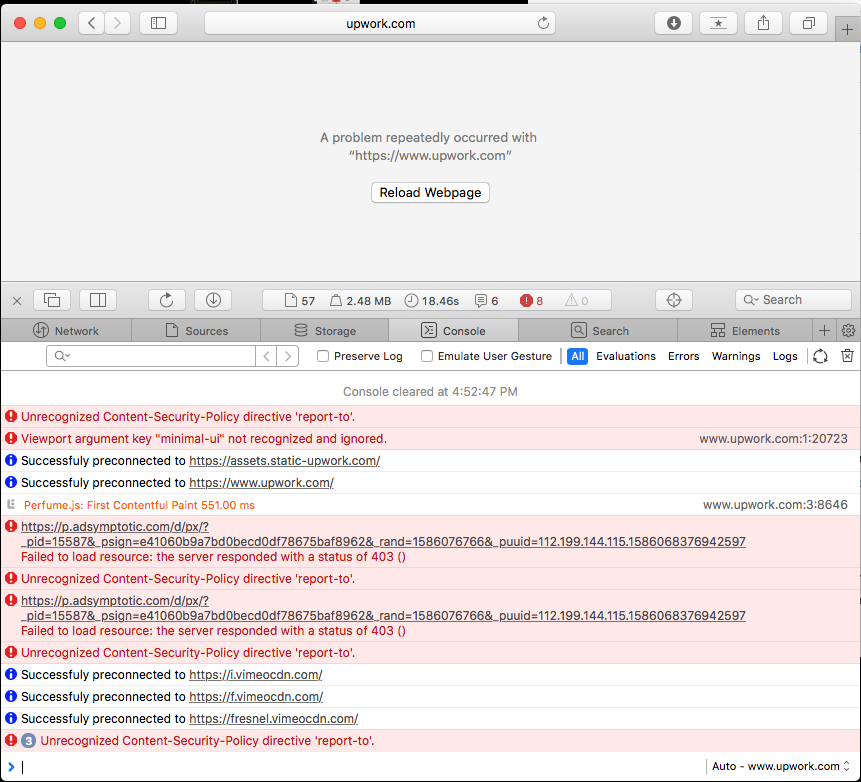 Since then, I've encountered problems with a number of websites where I keep getting this error: