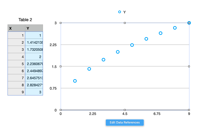 The image shows the chart as created by Numbers, after selecting the chart and clicking Edit Cell References to get the highlighting shown on the table.